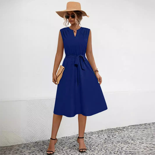 Style: Elegant Fit: Regular Fabric: Polyester Pattern: Solid Element: Belted Neckline: V-Neck Sleeve Type: Others...
