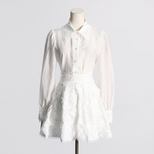 Style: Elegant, Korean Fashion, Kdrama Fashion Fit: Regular Fabric: Polyester Pattern: Solid Element: Button,Lace/Tulle/Fishnet Neckline:...