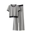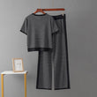 Designer Inspired Casual Knitted Women's Round Neck Top And Wide Leg Pants Two Piece Set