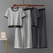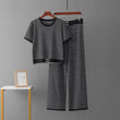 Bring elevated comfort to your everyday wardrobe with this Striped Knitted Two-Piece Set. Designed with a casual yet refined feel, the set includes a short-sleeve round-neck top paired with wide-leg ankle-length pants for a flattering silhouette. Crafted from a soft viscose-blend fabric, it’s perfect for both leisure and daily wear.