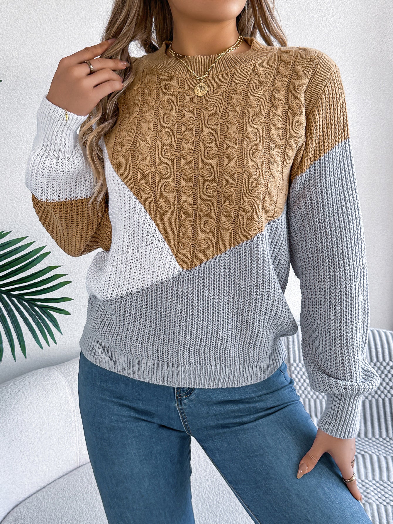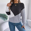 Contrast Color Twist Knitted Long Sleeve Pullover