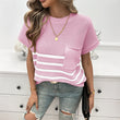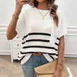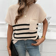 Crew Neck Striped Contrast Color Sweater with Short Sleeves