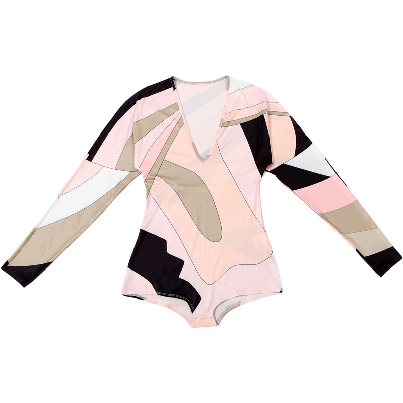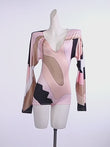 Deep V Plunge neck Long Sleeve Contrast Color Sexy Romper
