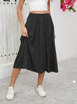 This basic yet beautiful skirt features a soft, flowy fit with an elastic waistband and pockets (yes, real ones!). Perfect for casual days or dressed-up moments.