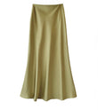 High Waist Slimming Mid Length Satin Acetate Silky Skirt Spring Summer Sheath Fishtail A Line Long Skirt