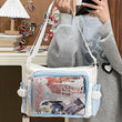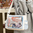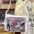 Large Capacity Casual Crossbody Bag Anime Themed Transparent Grain Pattern Nylon Shoulder Bag For Students Daily Use