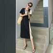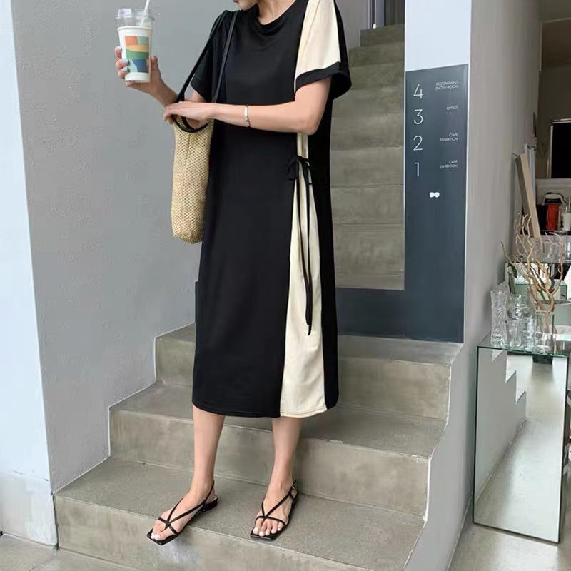Colorblock Side Tie Up Crewneck Short Sleeved Dress