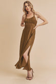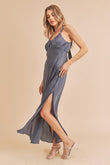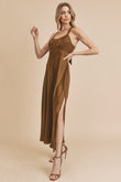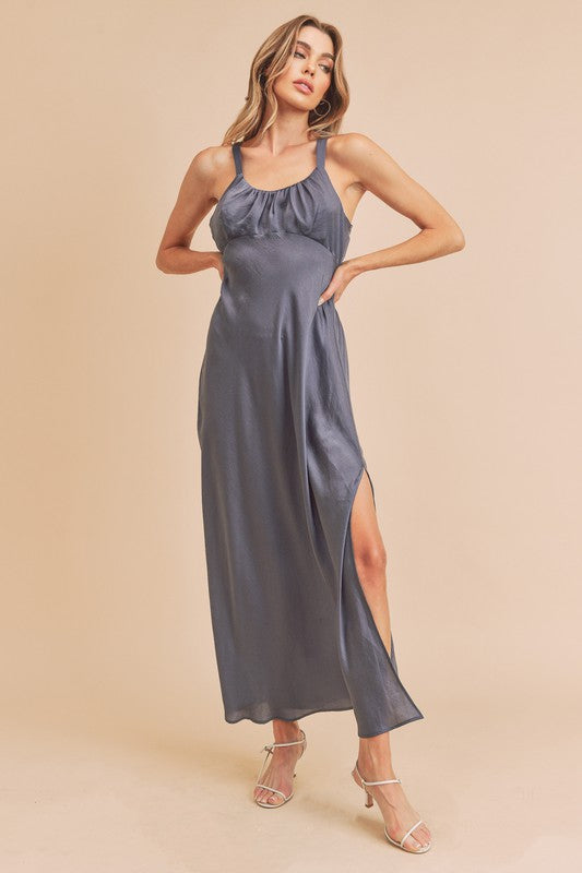 Elegant Mae Dress flaunts a figure-flattering silhouette crafted from a light and smooth fabric that is lightweight, stiff yet soft and feels delicate.