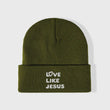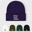Knitted Hat Embroidered LOVE LIKE JESUS Fleece Lined Cap