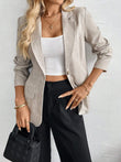 Upgrade your wardrobe with our One Button Lapel Collar Blazer, designed for versatile, all-day wear. Featuring a classic lapel collar, single-button closure, and flap pockets for a polished finish, this blazer is crafted from 100% polyester with a comfortable, normal thickness. Perfect for layering over casual or professional outfits.