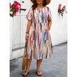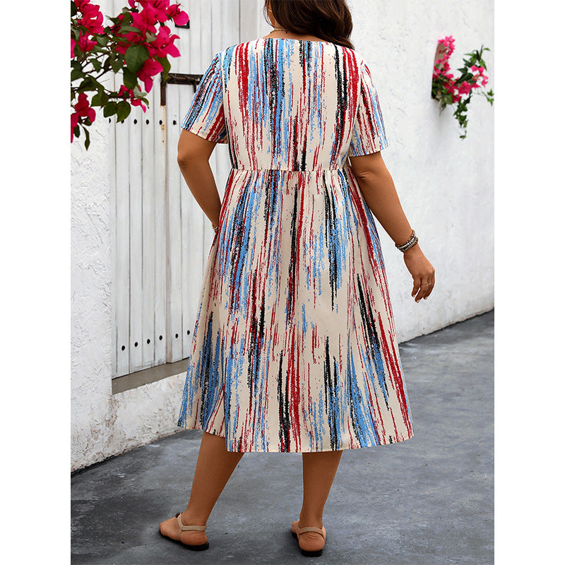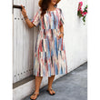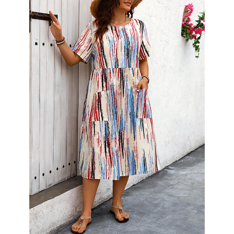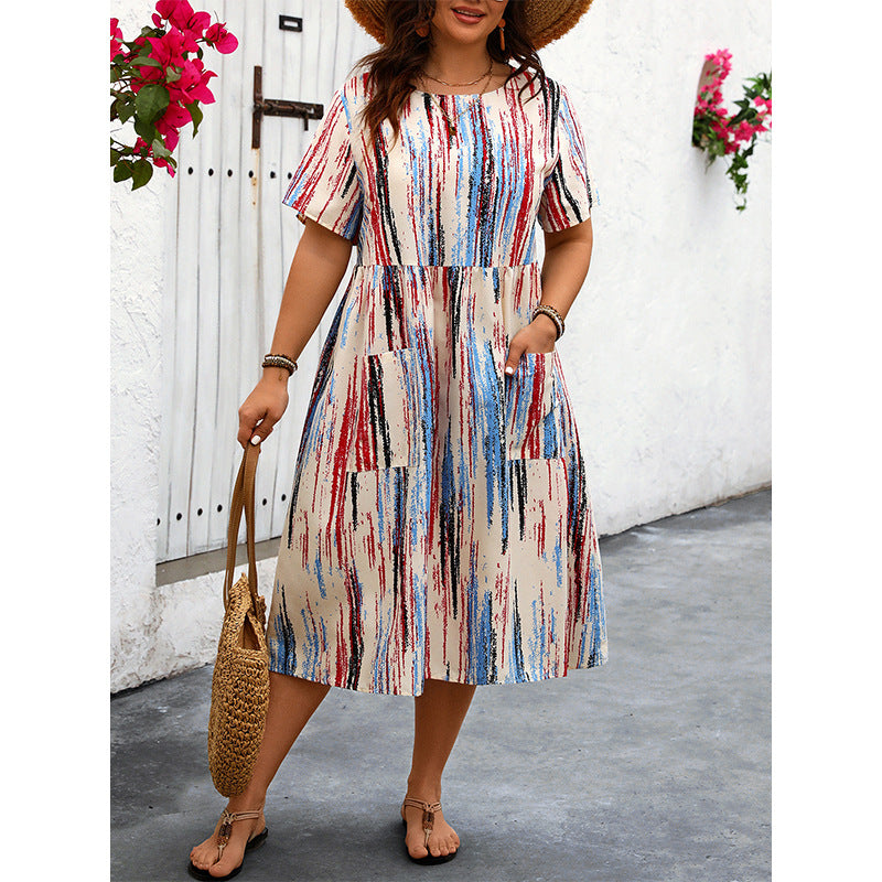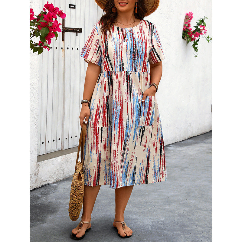 Plus Size Women Striped Printed Dress Spring Summer Product Loose Casual Pocket Maxi Dress