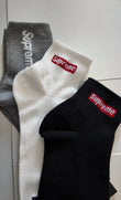 Each pair features a clean, minimalist logo design that channels modern streetwear energy — perfect for sneakers, slides, or casual fits.