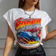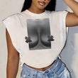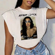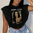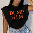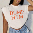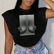 Printed Round Neck Sleeveless Split Casual Short Top