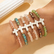 Cross Crystal Bead Elastic Bracelet Set Of 6