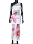 Shoulder Orchid Print Lining Tube Top Maxi Dress