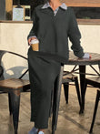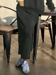 Striped Collar Sweatshirt and Slit Skirt Set