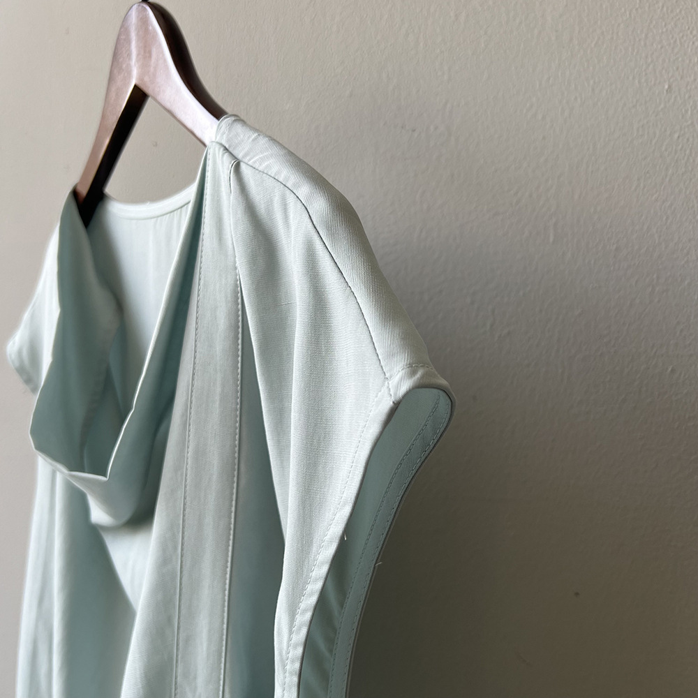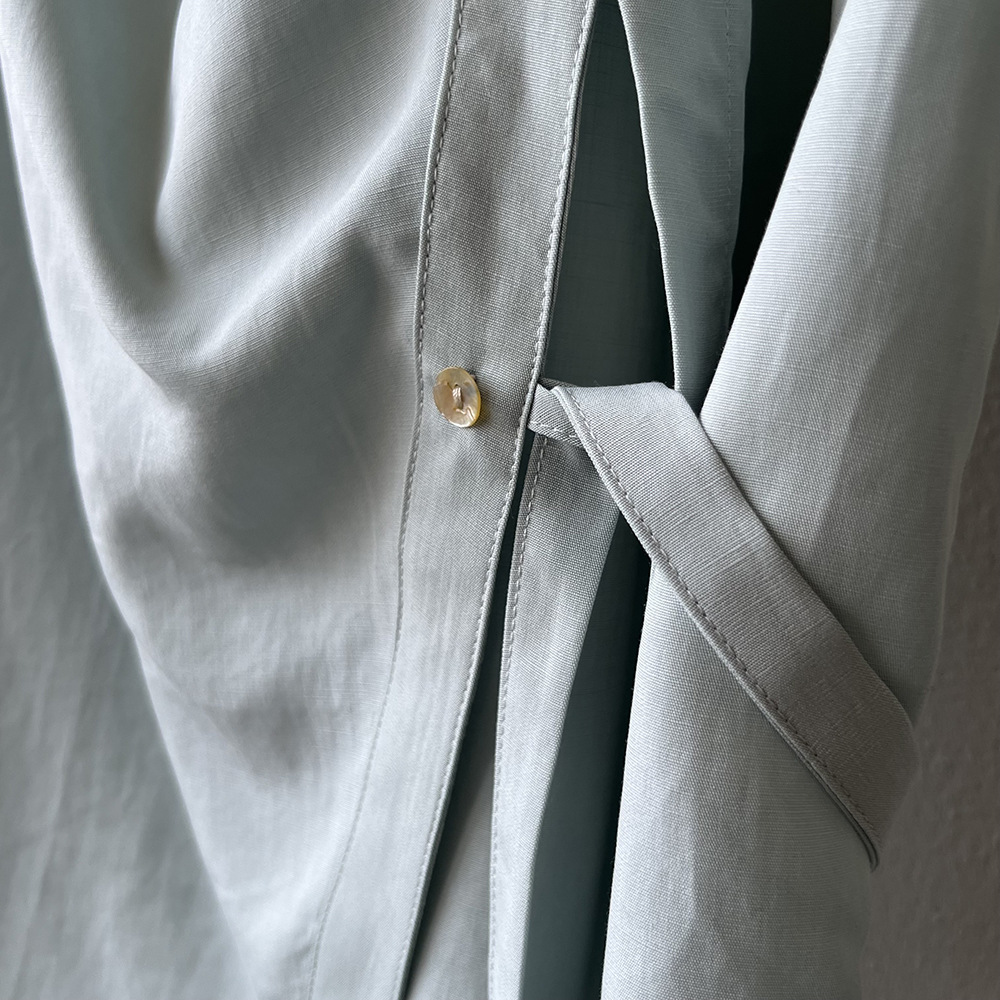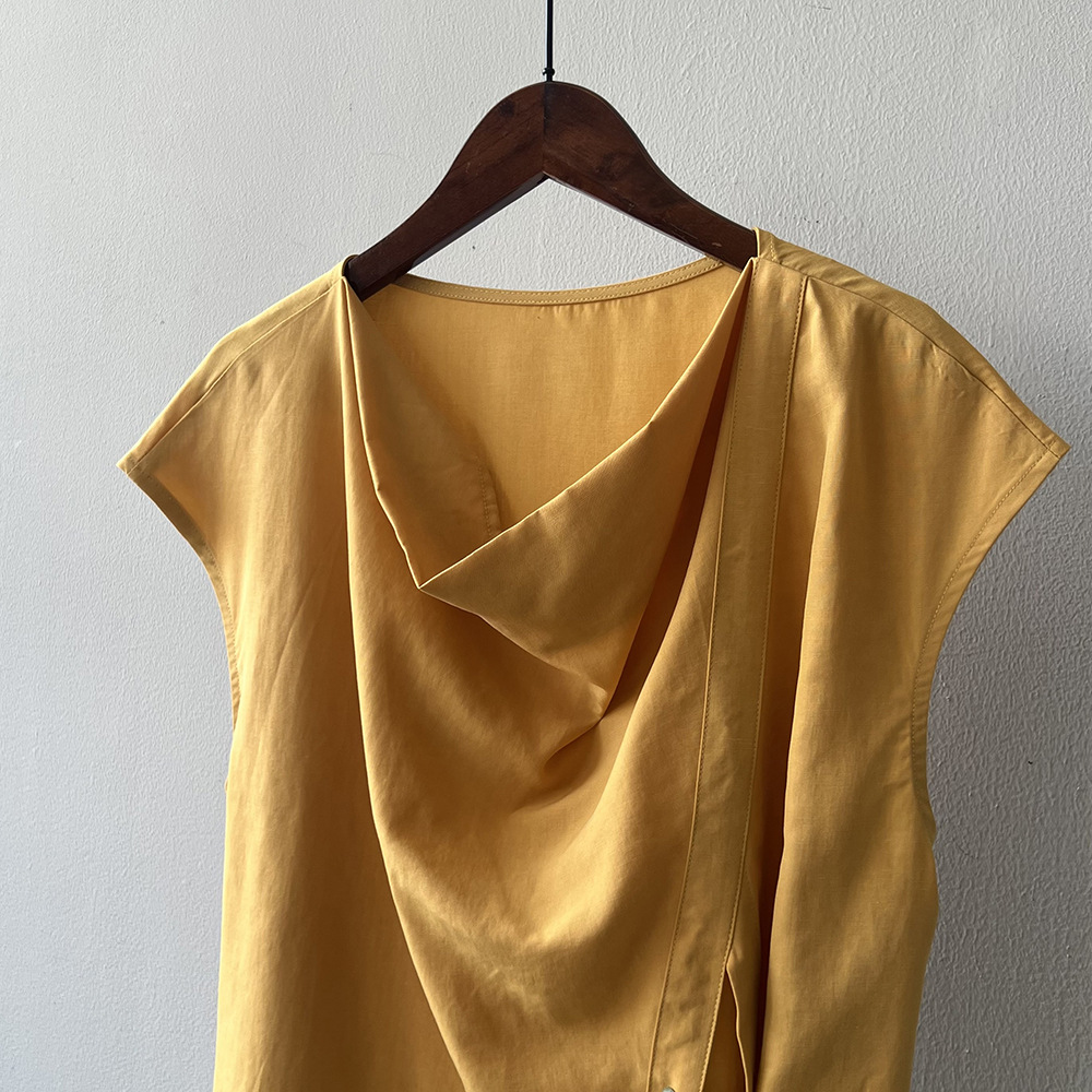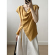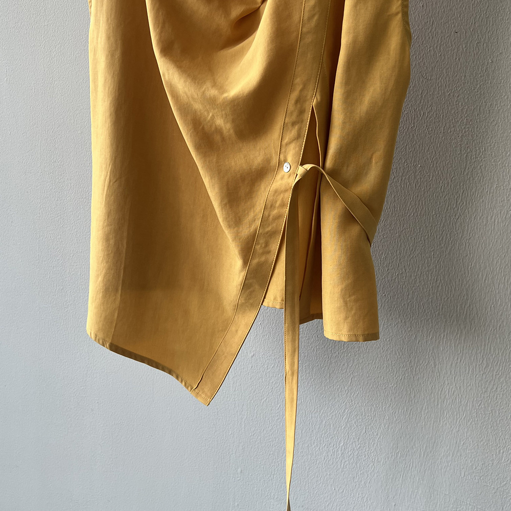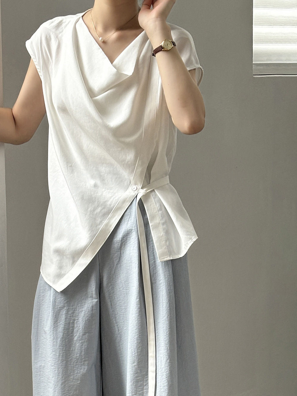 Swing Collar Tencel Shirt Women Summer Waist Controlled Self Tie Slit Sleeveless Shirt