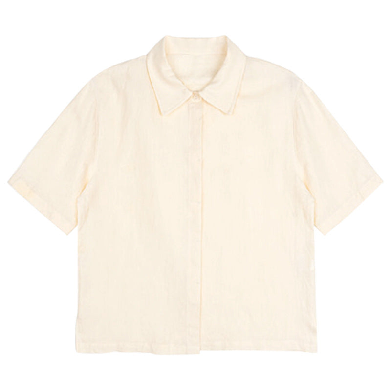 Breezy, effortless, and timeless — our pure linen collared short sleeve top is your go-to for summer days.